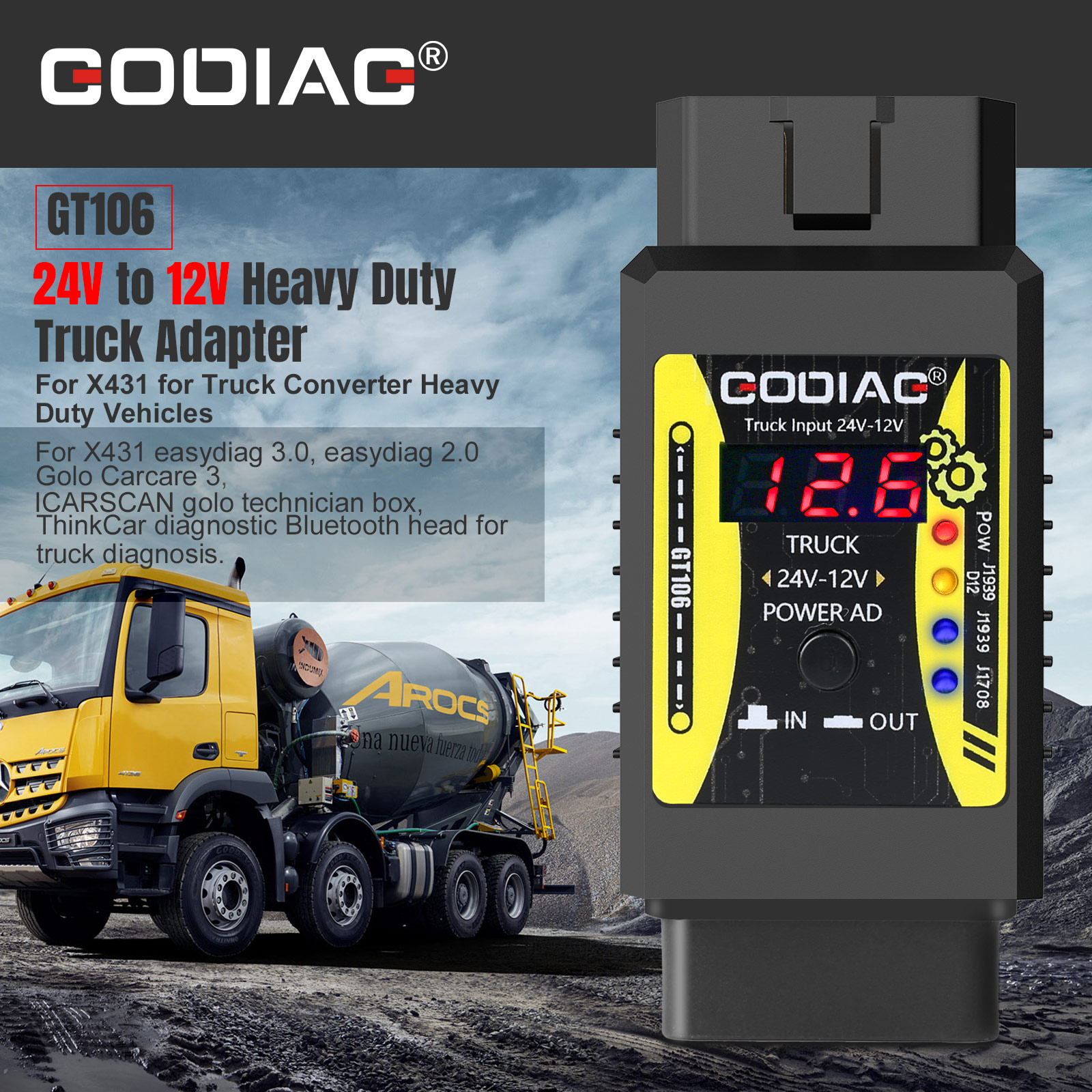 GODIAG GT106 Plus 24V to 12V Heavy Duty Truck Converter can convert heavy truck diagnostic...