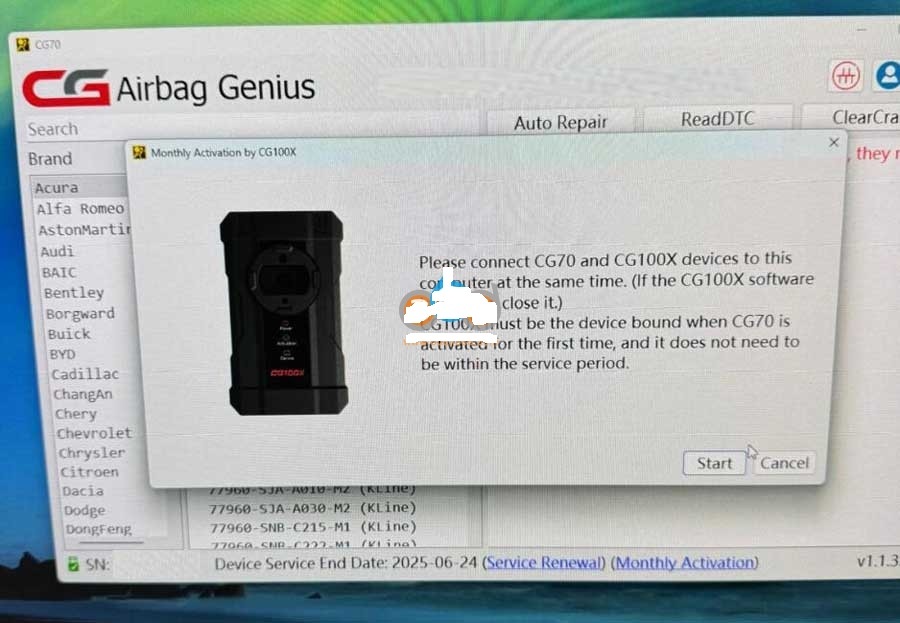 NOTE: CG70 requires activation monthly. If you combine CG70 with CG100X programer you don’t need to renew license every month.