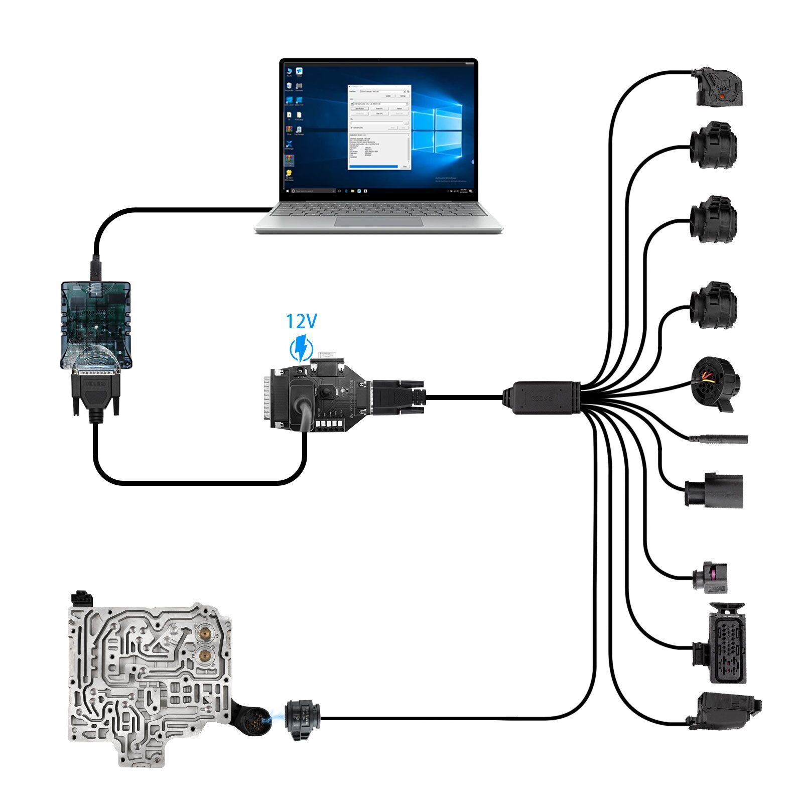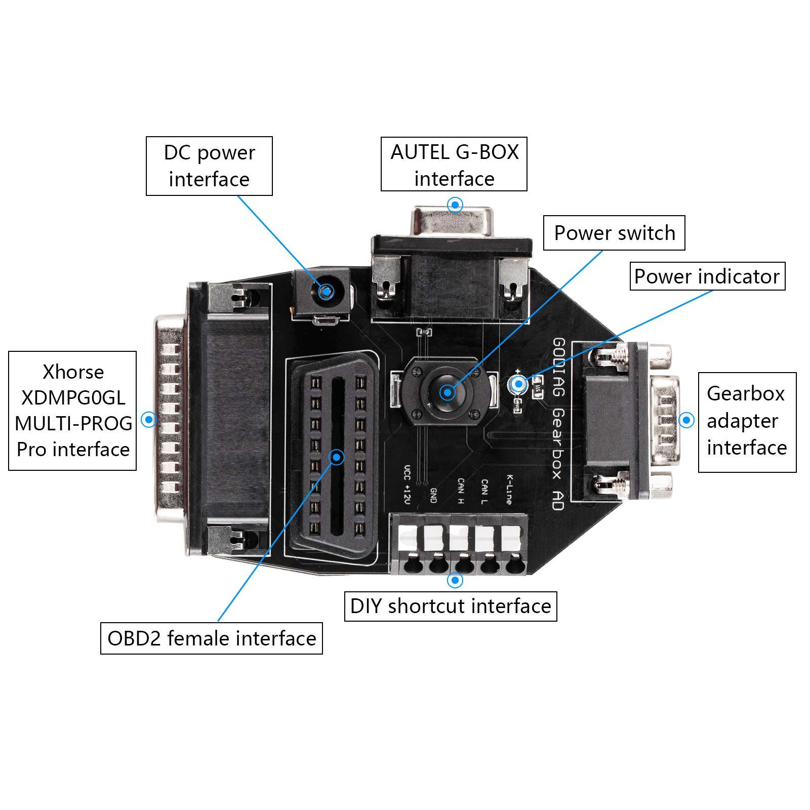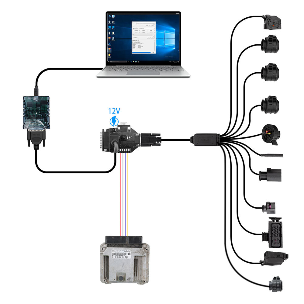 1. Supports connections to the AUTEL G-BOX, XHORSE MULTI-PROG, and all other OBD2-connectable devices, including the OBD2 BENCH PCMflash FC200, KESSV2, for diagnostics, data read/write, and cloning.