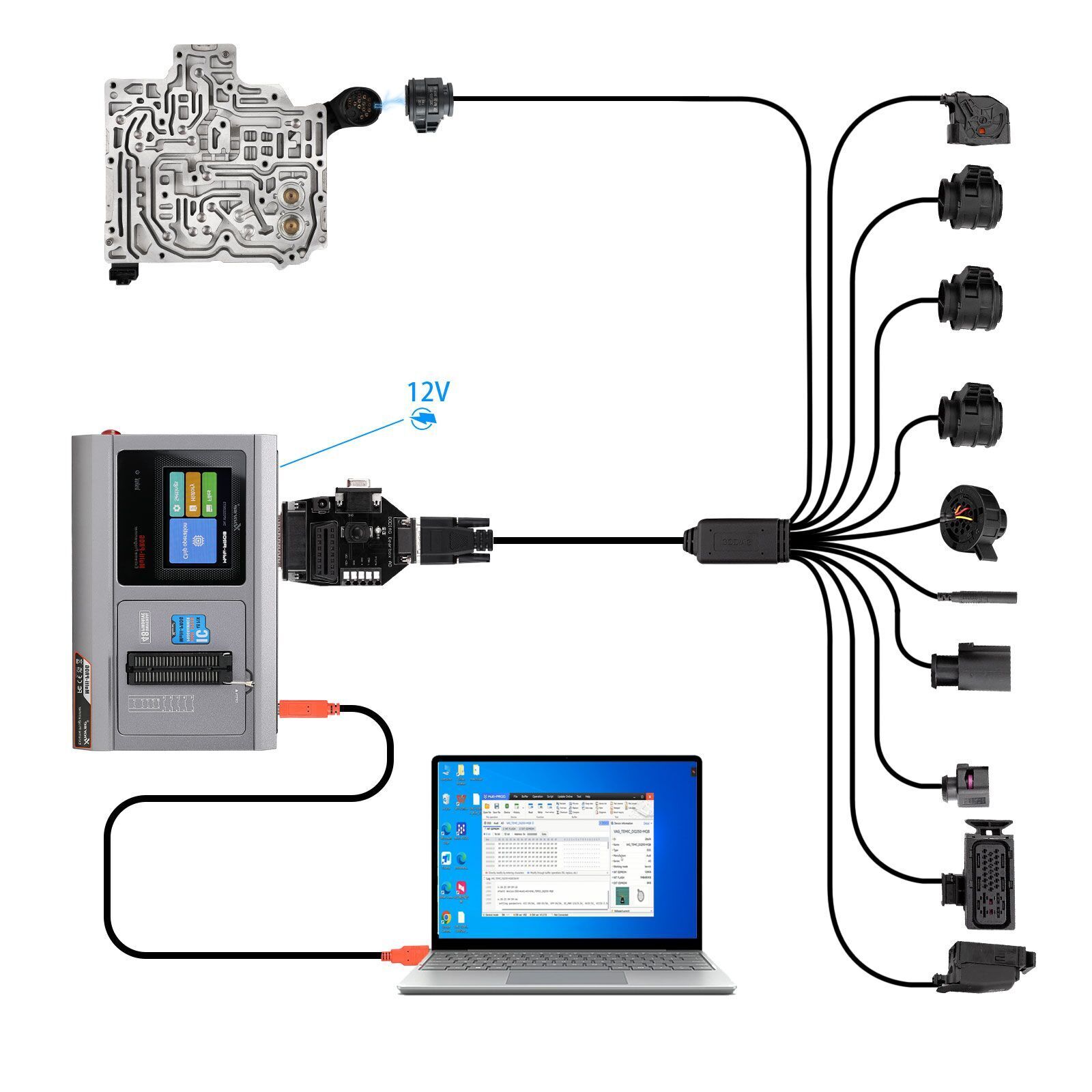 2. Supports V-A-G Gearbox V30/DQ200/DL501/VL300/VL381/DQ500/DQ250/DQ380/DQ381/DQ400E/DL382 for direct connection to the AUTEL G-BOX and XHORSE XDMPG0GL MULTI-PROG.