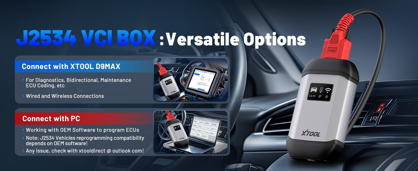 XTOOL D9 MAX scan tool with newly upgraded V208 VCI BOX. The V208 VCI BOX is a communication interface supporting J2534 specifications. Of course, it also can be used as a J2534 PassThru device, working together with the PC installed with the OEM diagnostic software to perform the J2534 protocol. J2534 protocol is the only solution for problems ranging from driveability and loss of power to poor fuel economy.