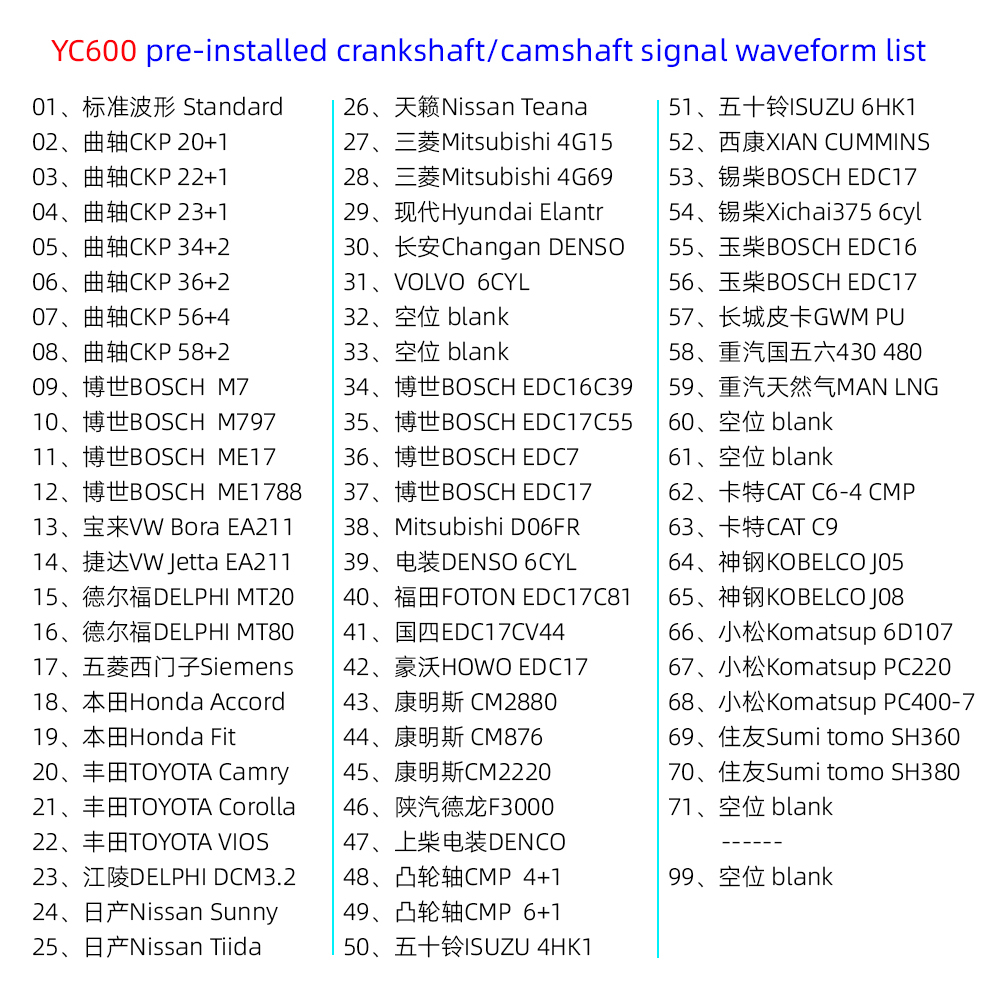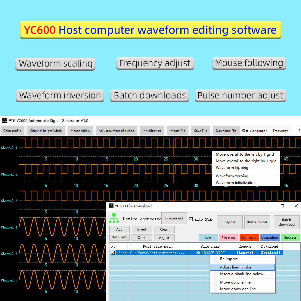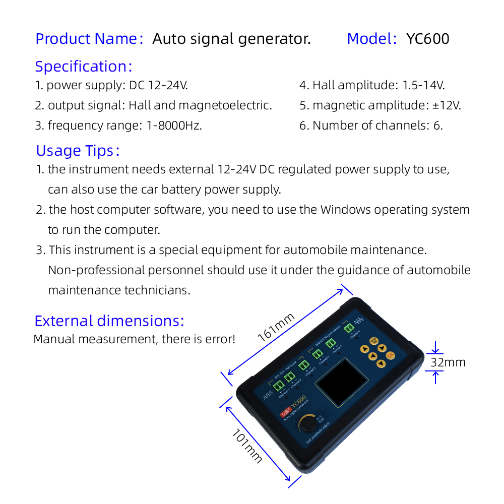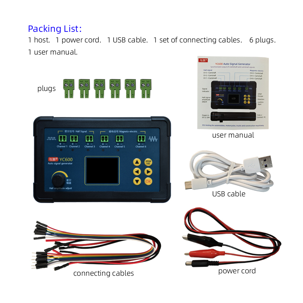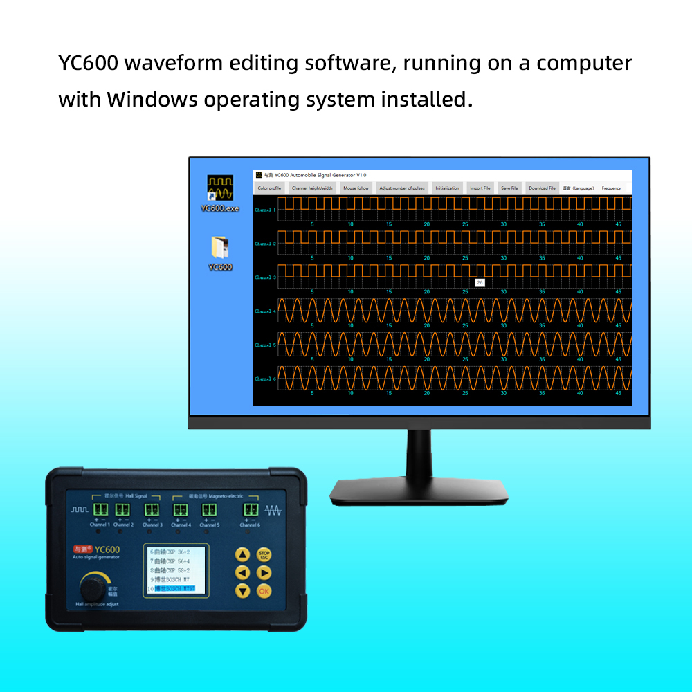 YC600 AUTO Signal Generator YC600 Crank And Cam Signal Generator Signal Frequency 1-8000HZ Support six channels signal synchronous output with PC software Support waveform editing