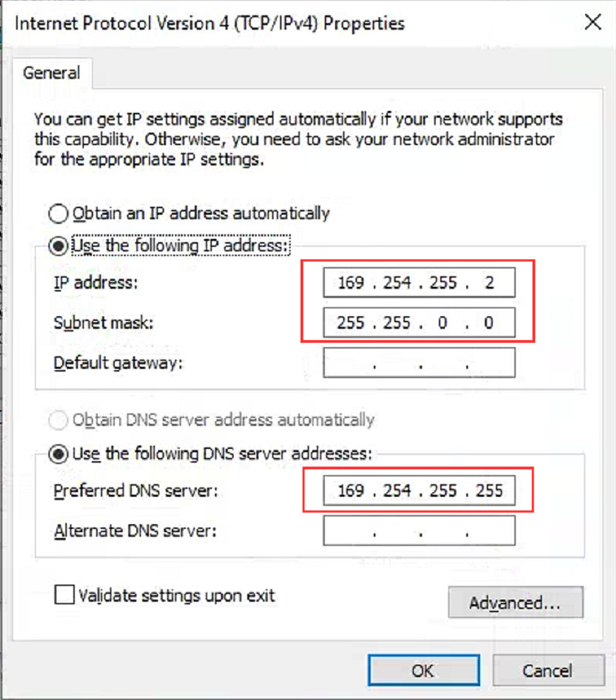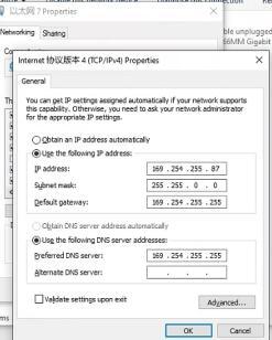 4. Click “Properties”–TCP/IPV4, and set the IP address as shown in the figure below.
