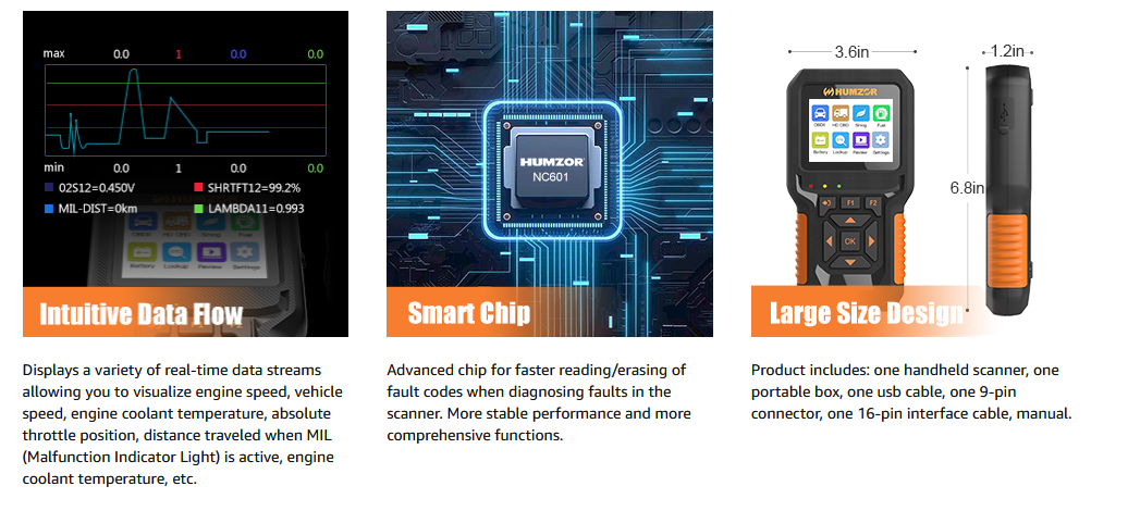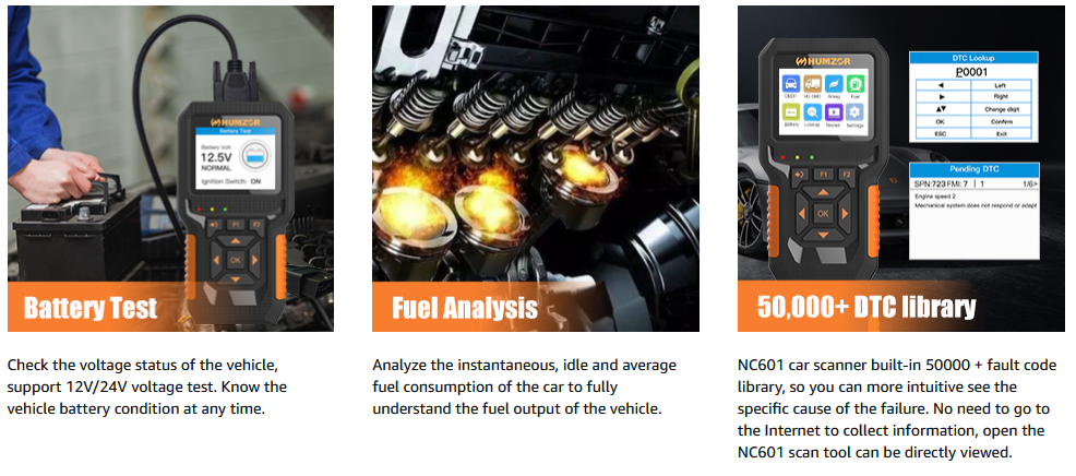 HUMZOR NC601 OBD2 Car Scanner Features