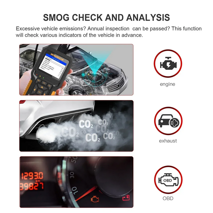 S-mog inspection: Check whether the vehicle exhaust meets the standards, and display various indications and status of the vehicle.
