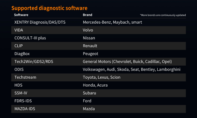 | Diagnostic Software | Vehicle Brands |