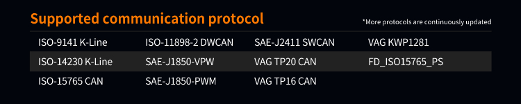 Supoort a variety of communication protocols and original diagnostio software (more protocoks and brands are continuously updated).