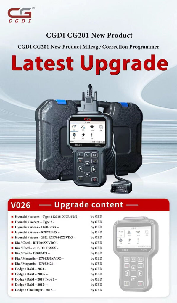 The CGDI CG201 is a new, specialized, and compact automotive programmer designed primarily for mileage correction, released around February 2026.