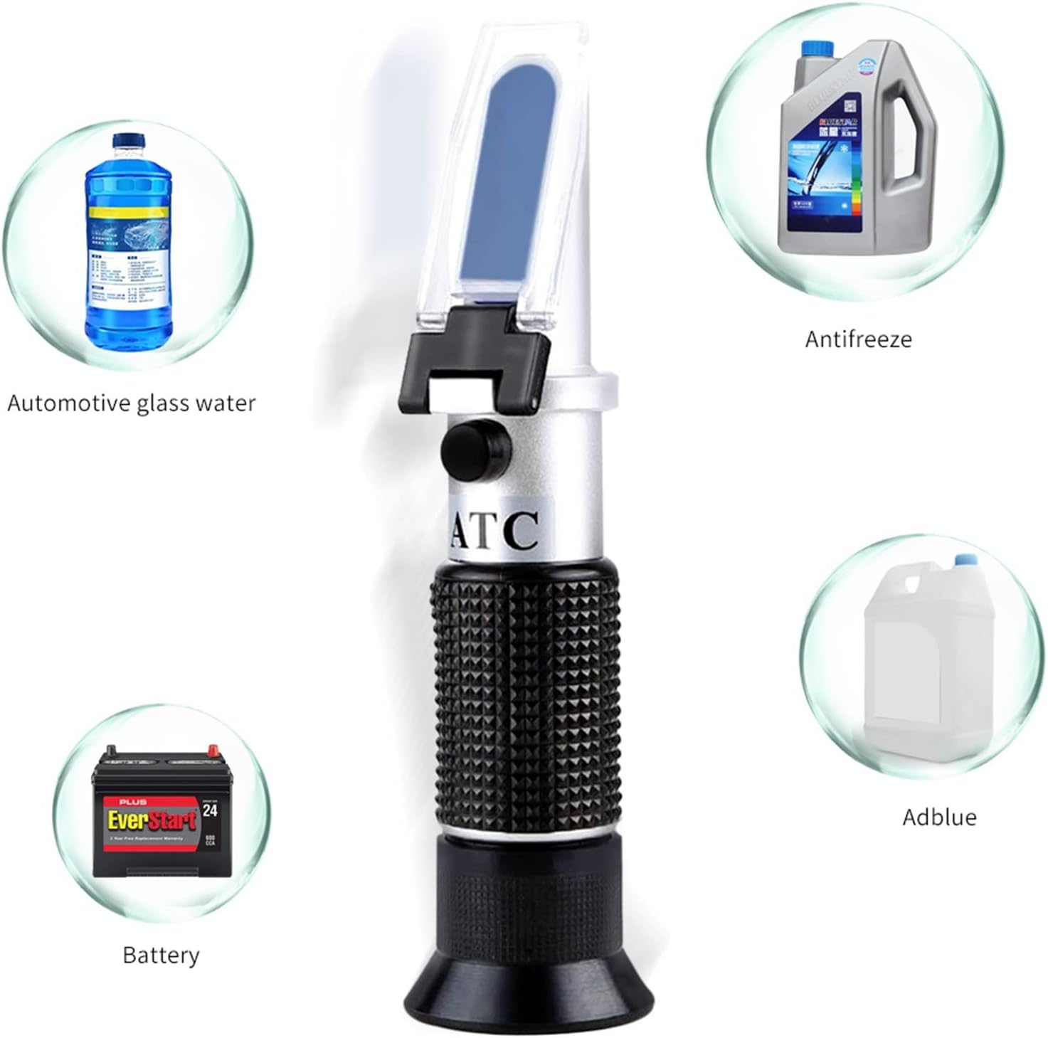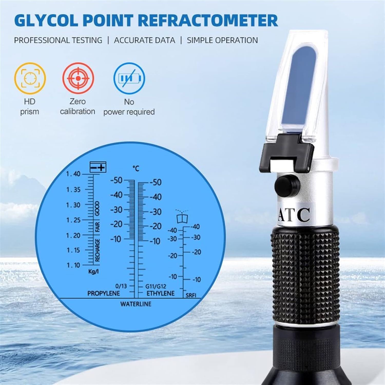 Battery Coolant Glycol Antifreeze Refractometer Tester Equipped with ATC (Automatic Temperature Compensation), can automatically adjust itself to correct temperature discrepancies while being used.