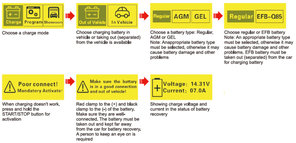 Hidden Repair Mode: Indicate whether the battery should be repaired or not. Work with various batteries, such as AGM battery, Gel battery.