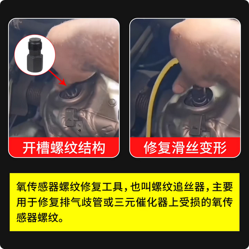 * Oxygen O2 Sensor Thread Repair Chaser Tool is designed to re-tap oxygen sensor threads, straighten damaged threads and prevent future cross threads, clean and reconnect damaged oxygen sensor ports.
