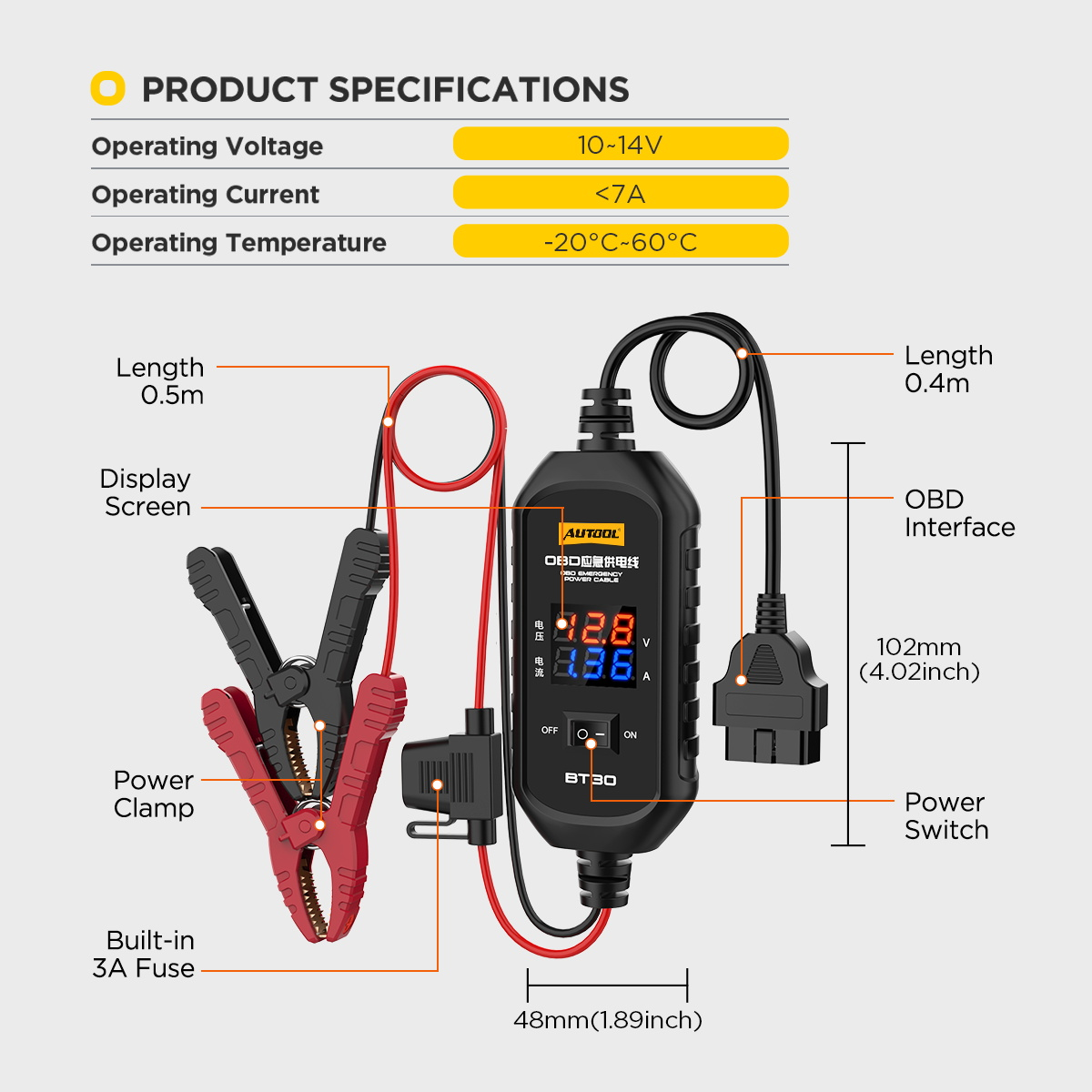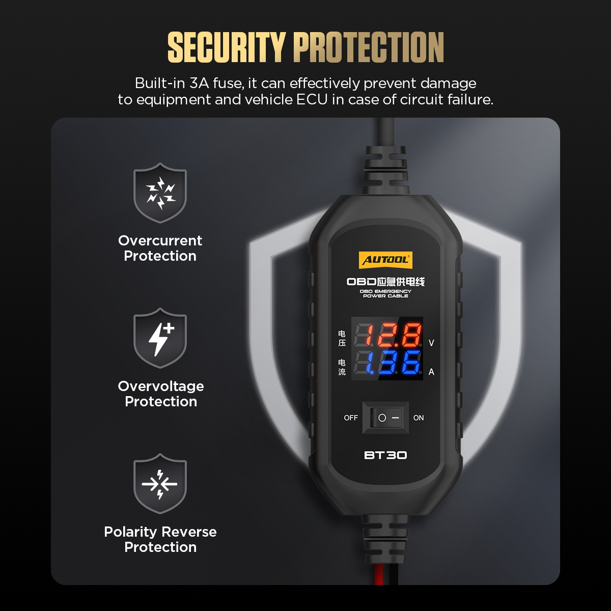AUTOOL BT30 ECU Emergency Power Supply Cable Features