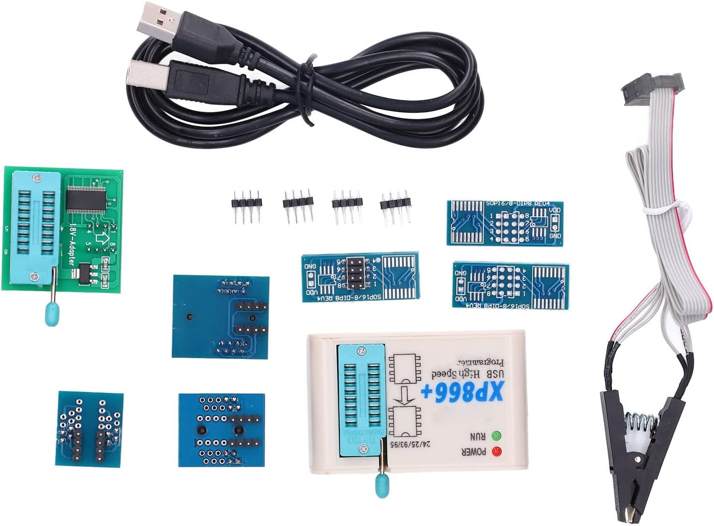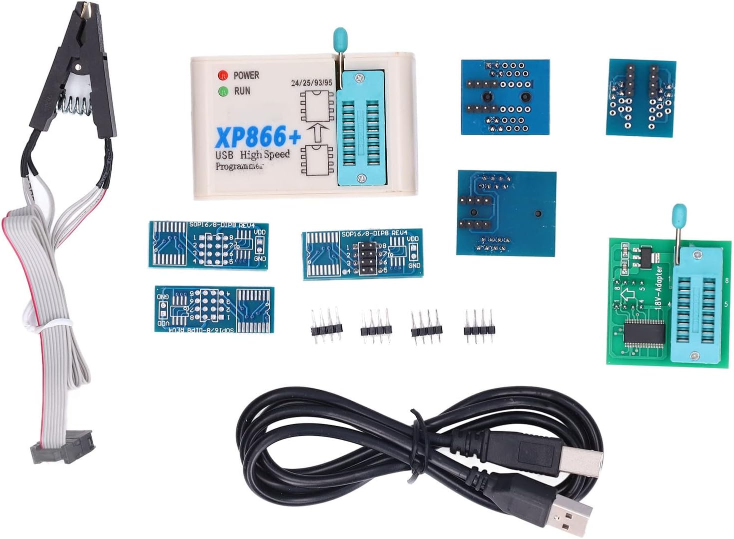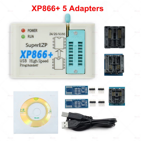 Super XP866+ USB High Speed Programmer fully support for 25 FLASH, for 24 EEPROM, for 25 EEPROM, for 93 EEPROM and other series of memory chips.