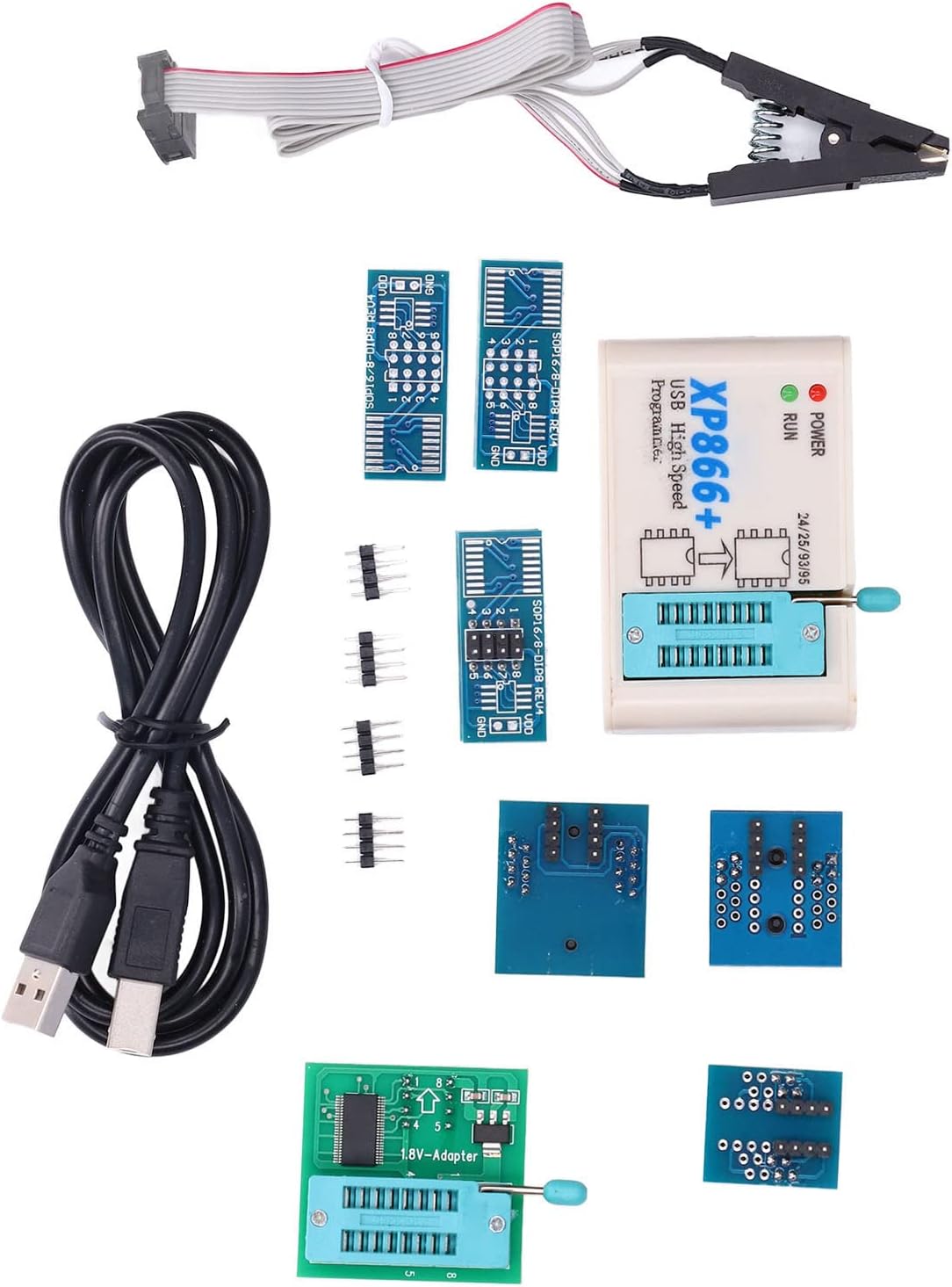 Super XP866+ USB High Speed Programmer has fast reading and writing speed, only 3 seconds to read EN25T80 and 9 seconds to write EN25T80. XP866+ SPI Eeprom Flash Chip Programmer Full Set With XP866+ 5/7/12 Adapters Support 24/25/26/93/95 EEPROM Flash Bios 32/64bit. CheShiTech.com XP866+ USB Programmer Super XP866+ high speed usb spi programmer With 5/7/12 Adapters supports XP866+ PC software and programmer firmware upgrade.