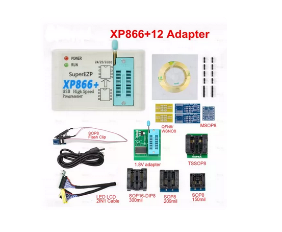 Super XP866+ USB High Speed Programmer XP866+ SPI Eeprom Flash Chip Programmer Full Set With XP866+ 5/7/12 Adapters Support 24/25/26/93/95 EEPROM Flash Bios 32/64bit