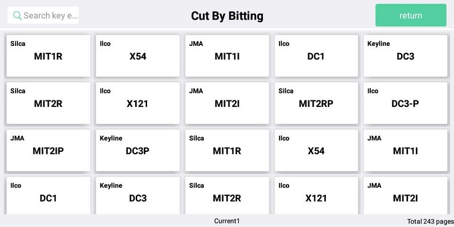 Includes full vehicle key database and key blank library, supports lost key search, tooth depth analysis, and customized key types.