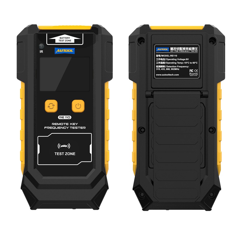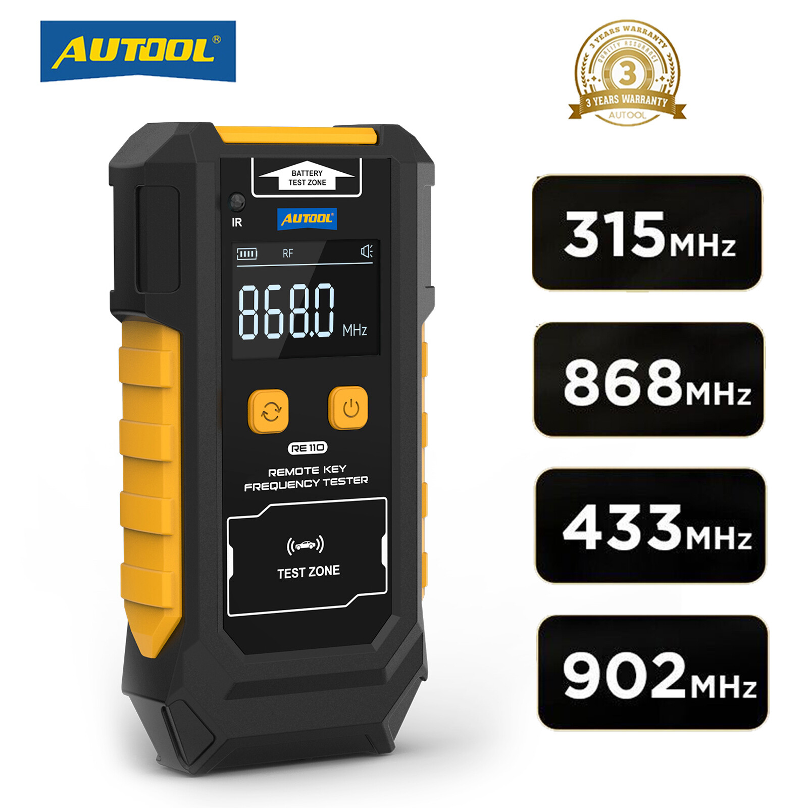 AUTOOL RE110 Remote Key Frequency Tester Key Fob Signal IR Infrared Remote Test AUTOOL RE110 Handheld Infrared Signal Detector supported frequency range: 315MHz, 433MHz, 868MHz, 902MHz