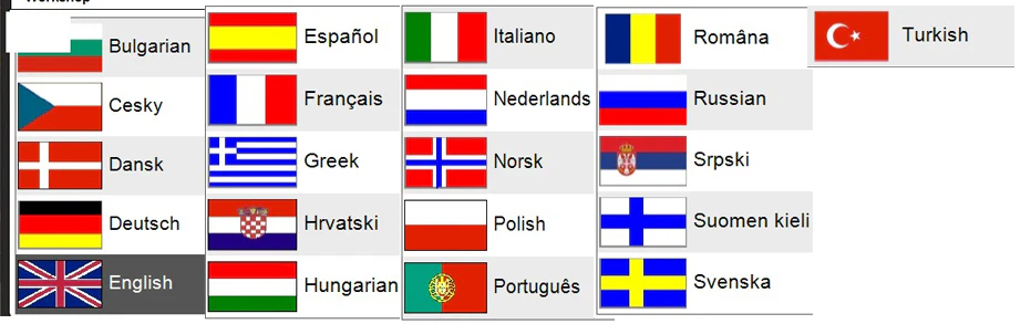 Languages: English, Czech, Dansk, Dutch, Finnish, German, French, Greek, Hungarian, Italian, Norwegian, Polish, Portuguese, Romanian, Russian, Serbian, Spanish, Swedish, Turkish.