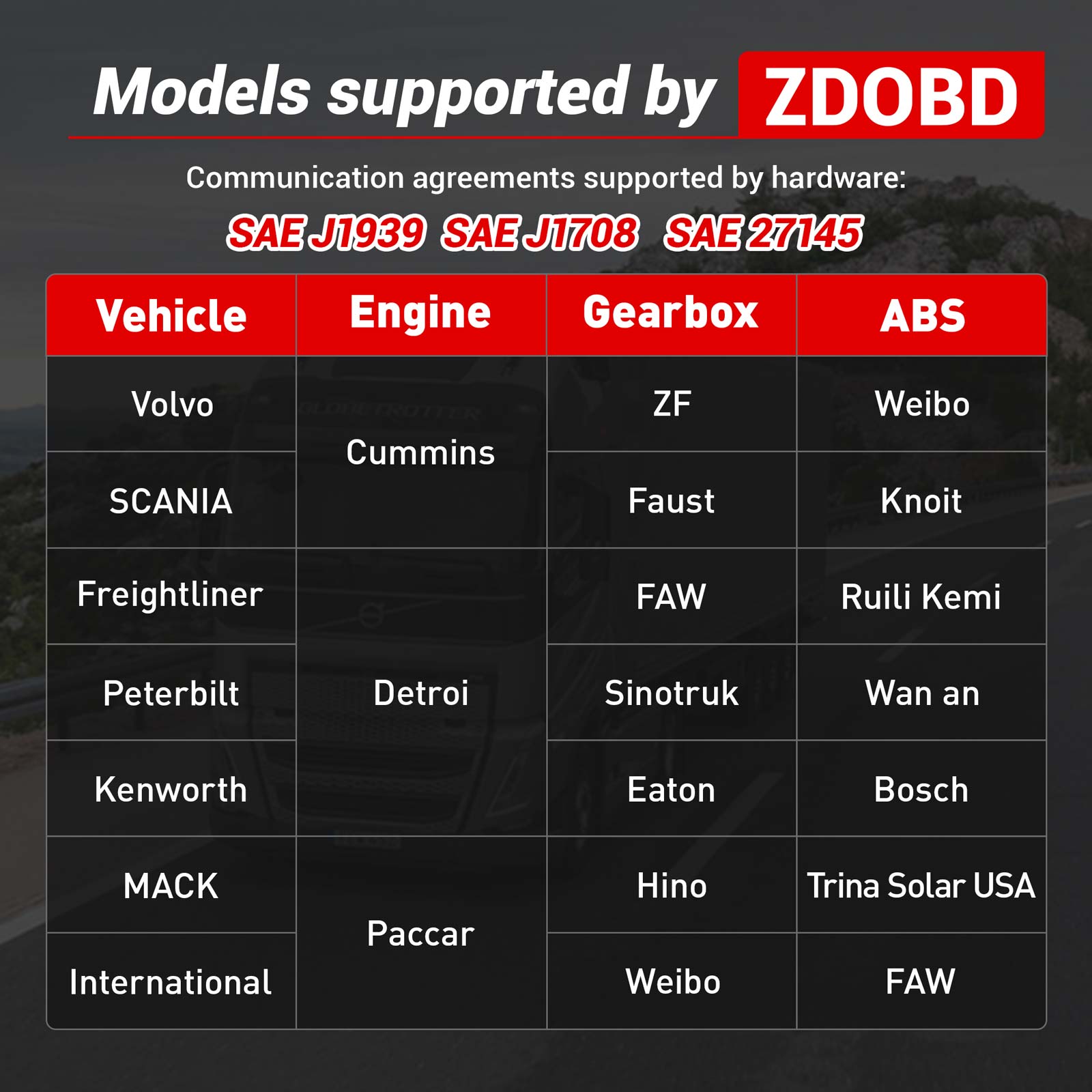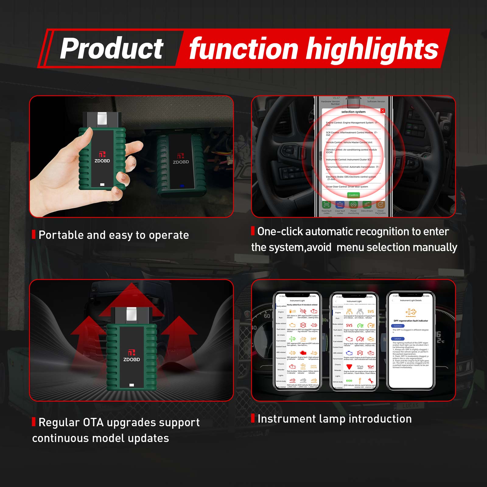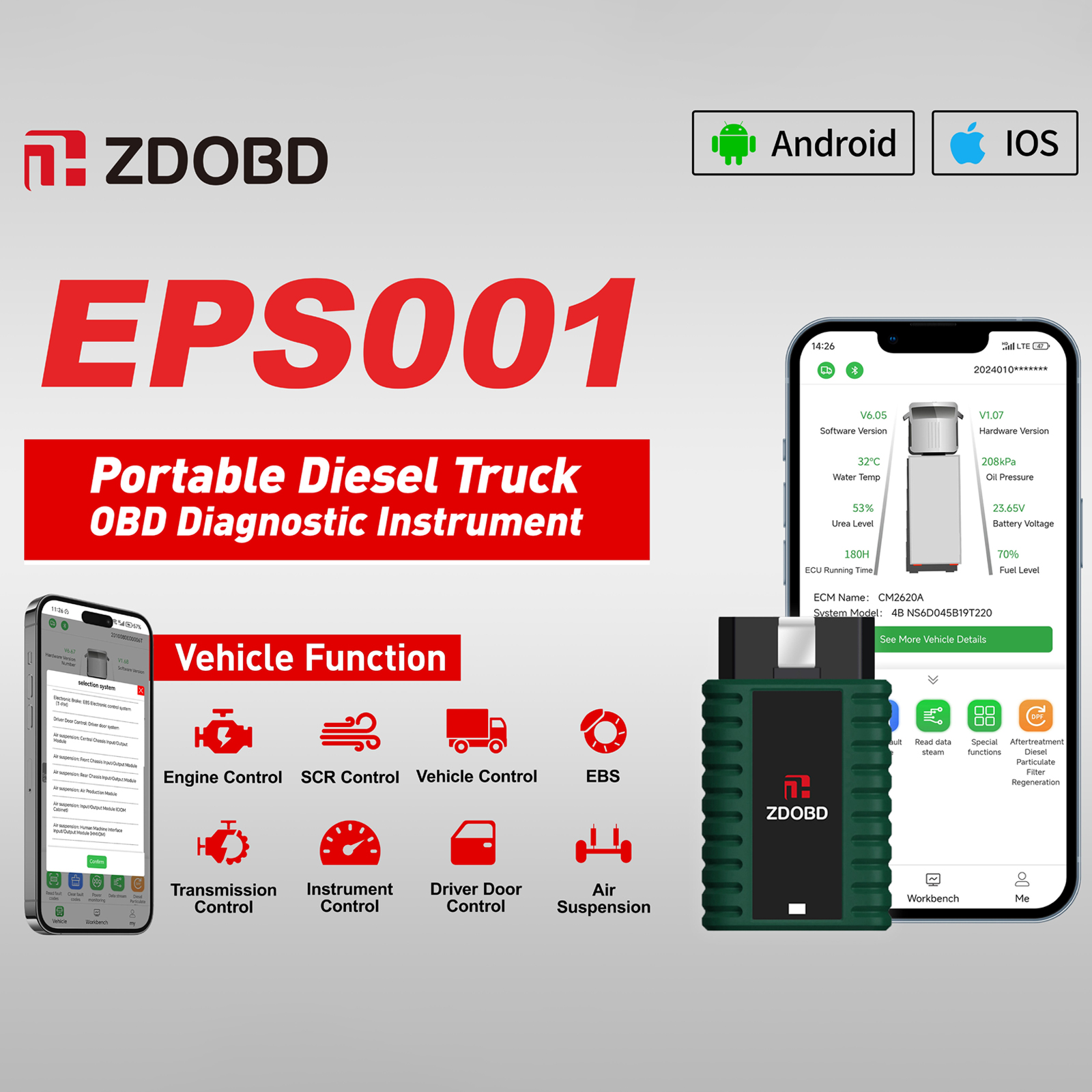 ZDOBD EPS001 Heavy Duty Truck Scanner Functions: