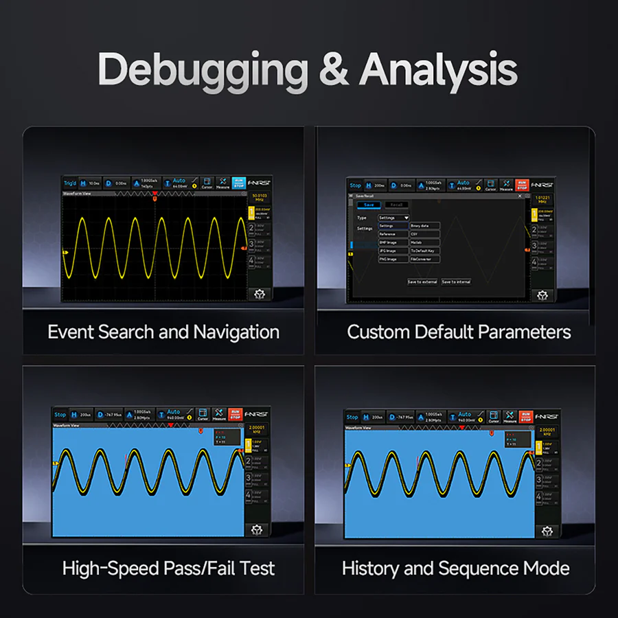 Intelligent Analysis Tools: The device includes event search and navigation functions, allowing users to quickly locate waveform events based on defined criteria.
