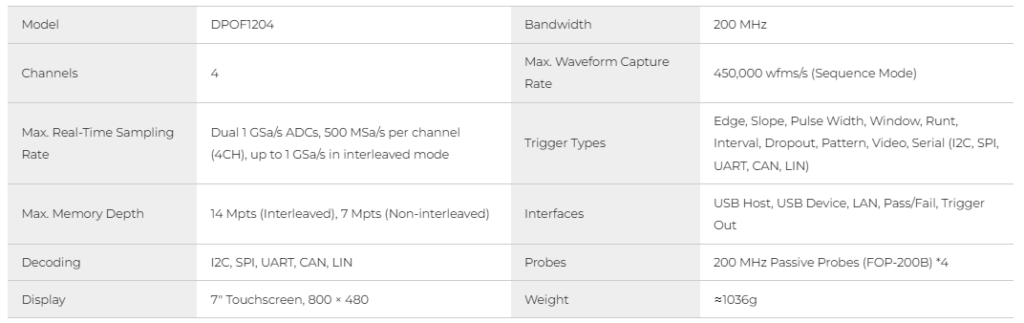 Analog 4CH Ultra Precision: Equipped with four independent analog channels, the DPOF1204 ensures high-precision signal acquisition and accurate multi-channel analysis for complex and high-demand measurement applications.