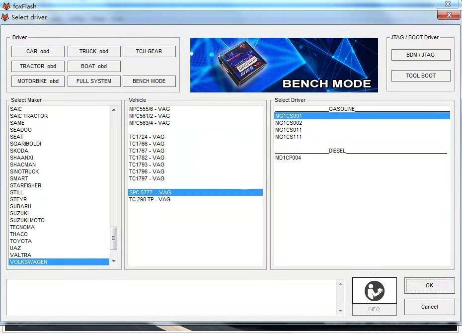 The FoxFlash is a new professional ECU, TCU, cloning and chip-tuning programmer. FoxFlash is full protocol activated for cars, trucks, bikes, tractors etc. FoxFlash can read and write ECU, TCU via OBD, Jtag, Bench and Boot mode. Software is free update, no annual fee.