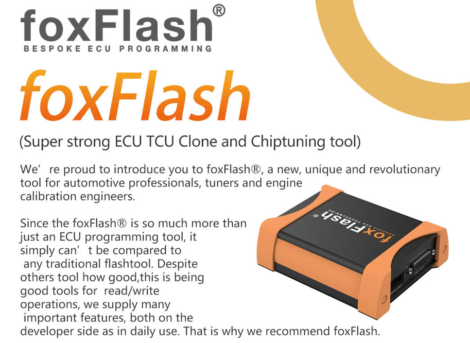 foxFlash is a powerful solution developed for professional chiptuners, calibration engineers and control unit (ECU and TCU) repair shops. foxFlash includes multi-method control unit programming for tuning ability,this tool from tuner design ,so you can get many of them support.