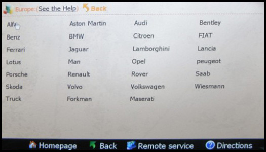 Including: Alfa, Audi, Benz, BMW, Ford, GM, Honda, Lexus, Mazda, Misubishi, Peugeot, Porsche, Renault, Toyota, Volvo, Volkswagen, Other, Address, BMW TV-free