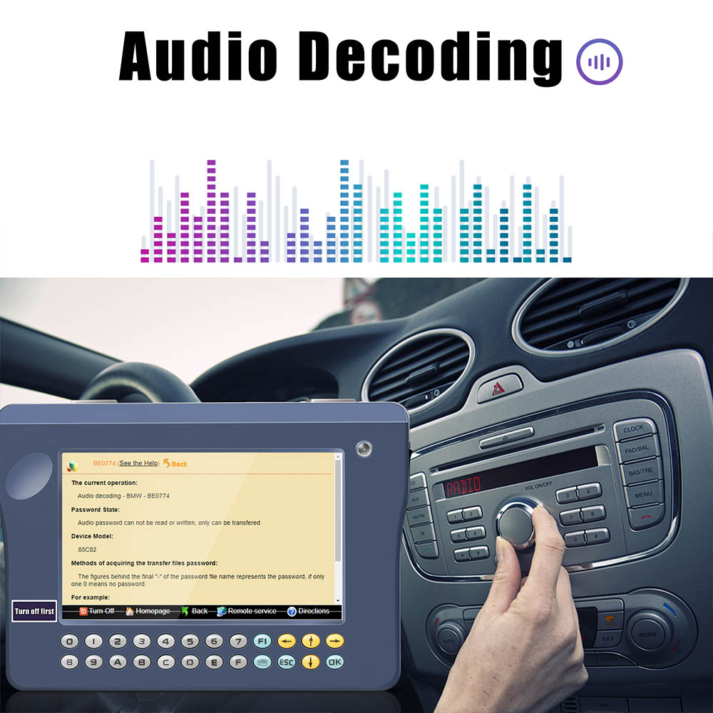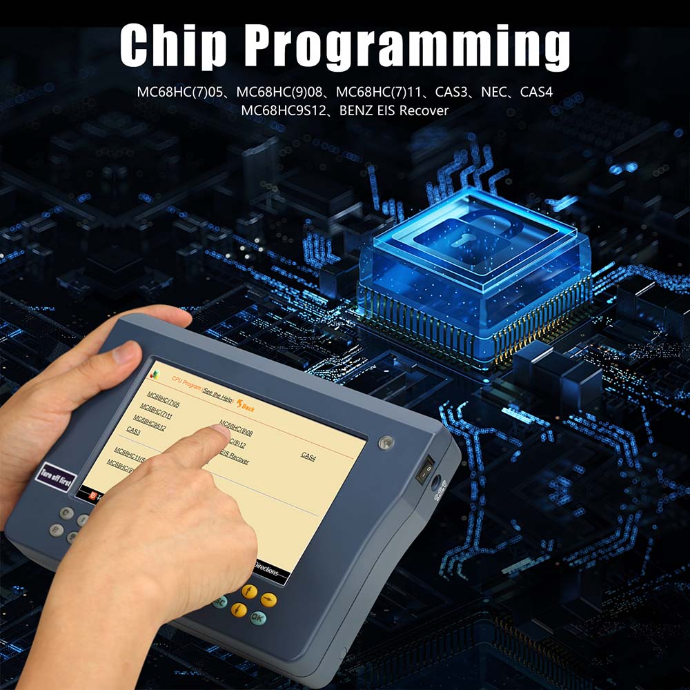Seven inch LCD touch-screen with high resolution makes its interface easy-used. Working with various types of adapter you can easily achieve odometer correction Audio decoding¡¢airbag resetting engine ECU resetting IMMO, programming key for Benz and BMW etc. It is applicative for all types of data processing such as OBD connection, dashboard soldering, CAS-BDM.