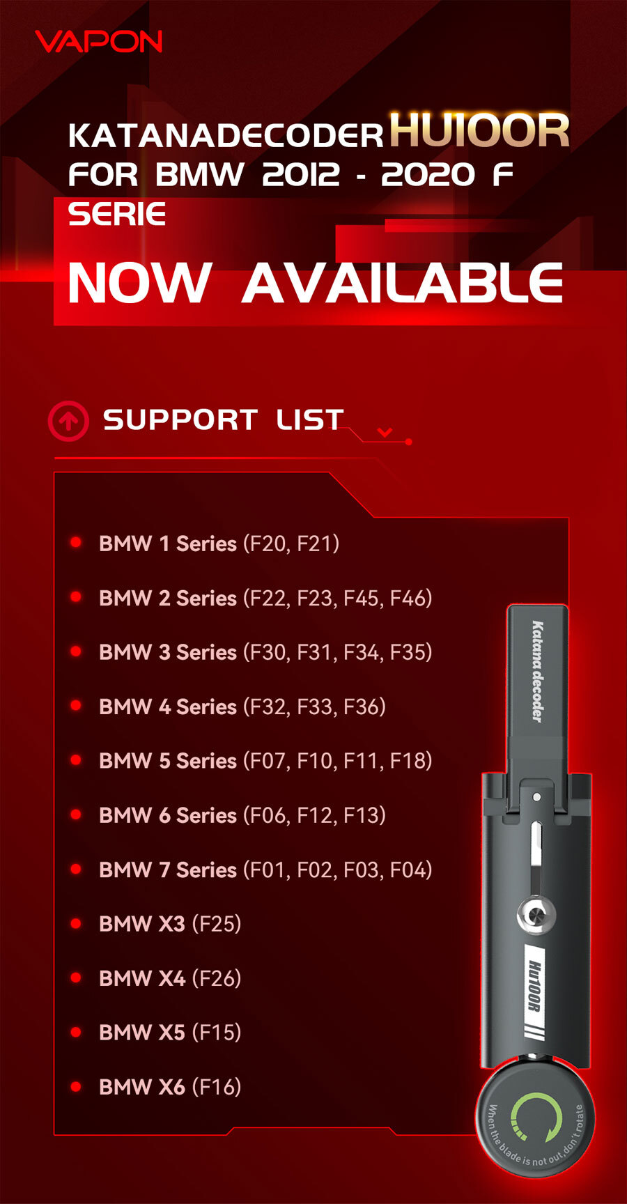 VAPON KATANA Decoder HU100R Auto Pick and Decoder Supported BMW Models: